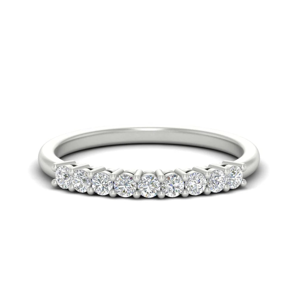 Wedding Band Half Eternity Round Dainty Minimalist Stacking Ring features premium moissanite stones with a total weight of 0.27 carat, offering bright round-cut sparkle. Crafted in your choice of 10K, 14K, 18K gold or 925 sterling silver, this elegant half-eternity band is perfect for stacking with engagement rings or wearing as a delicate everyday wedding ring. The minimalist design blends timeless elegance with modern simplicity, making it ideal for weddings, anniversaries, promise rings and bridal sets.